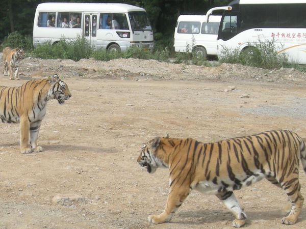 半分お金を捨てたつもりで諦めていたのですが、当日朝はホテルにガイドの女性が迎えに来てくれて、丸一日のバスツアーでした。肝心なツアーの内容は地方から大連観光に上京した中国人向けなので、日本人から見るとうんざりしそうなショウ、猛獣園にバスでそのまま乗り入れて、ライオンがニワトリを襲う猛獣ショウなどでどうかと思ってしまいます。あとはタイから来た雑技団のワニ使いがワニの口の奥まで頭を突っ込むというショウで、もしガブリと噛まれたらどうするのだろうとハラハラドキドキでした。